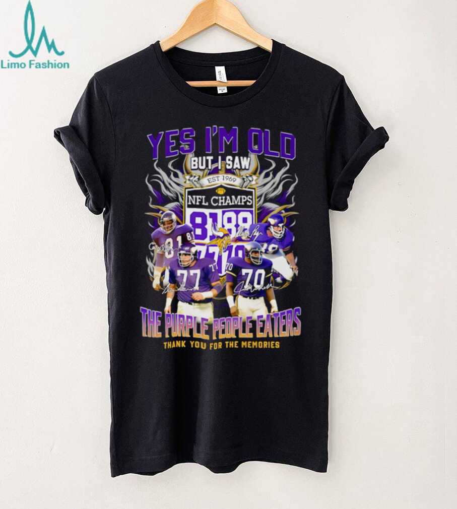 Are you a veteran Minnesota Vikings fan who vividly recalls the earth-shattering plays of the “Purple People Eaters”? Limotees.com understands that true fandom comes with history! Presenting the Yes I’m Old But I Saw The Purple People Eaters Thank You For The Memories Minnesota Vikings Shirt – a powerful tribute to a legendary era and a testament to your personal journey as a lifelong Vikings faithful. This shirt isn’t just about nostalgia; it’s about owning your place in Vikings history.
