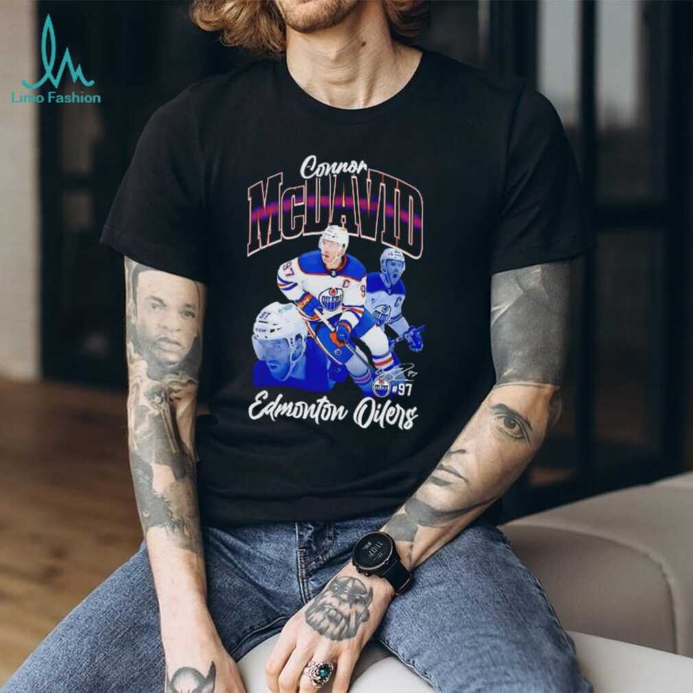 At Limotees.com, we know that true Oilers fans demand merchandise that matches their passion and endures through every thrilling season. The Edmonton Oilers Hockey Connor McDavid Signature Graphic Shirt is built with fan loyalty in mind: