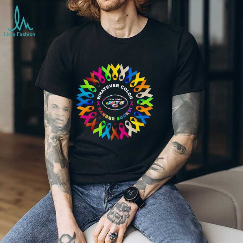 Shop the New York Jets Whatever Color Cancer Sucks Ribbons Shirt!